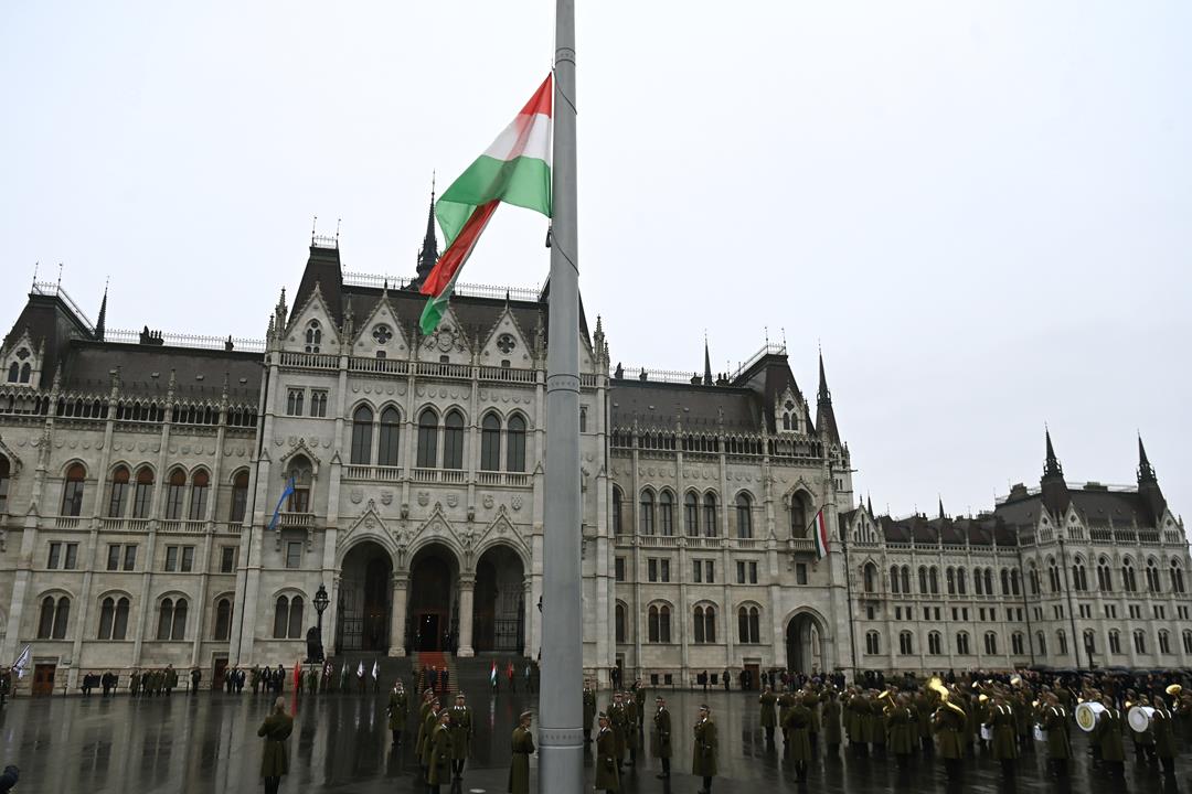 FOTÓK: Március 15-i Nemzeti Ünnep megkezdődött, zászlót emeltek a Magyar Parlamentnél
